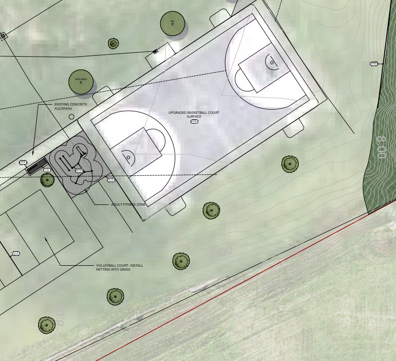 - A new active recreation hub with outdoor exercise equipment and a volleyball net, all beside a refreshed basketball court.