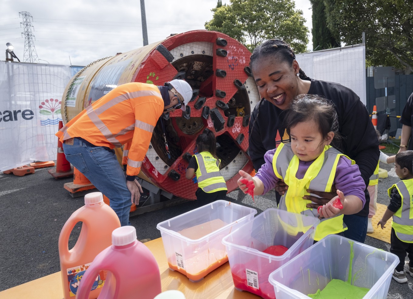 "It was such a great experience for us to come out and get a closer look at what’s happening right in our neighbourhood. The kids enjoyed learning about the tunnel boring machine and loved leaving their colourful handprints on it.