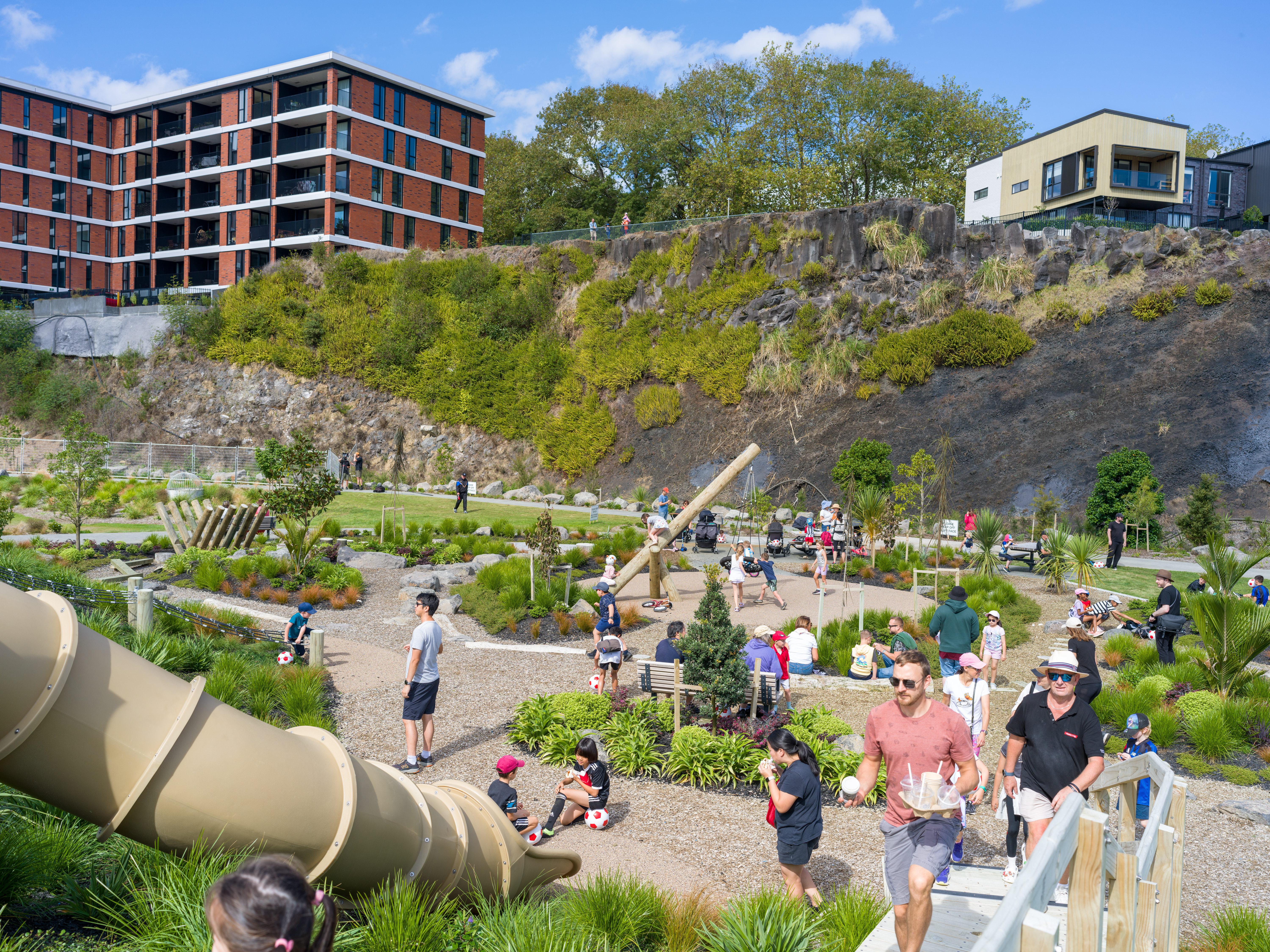 Situated in the Three Kings Quarry space behind Three Kings Reserve, the Taurangi playground and sportsfields have unlocked a new play spaces and critical fields for sports teams since opening in 2025.