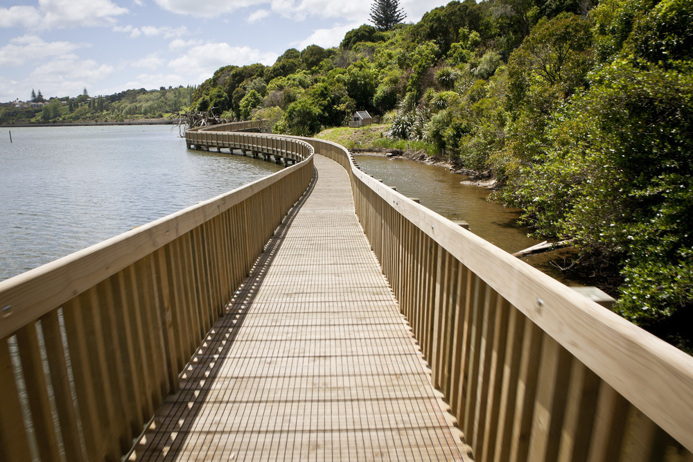 This walkway is a coastal route from Meola Road to Westmere Park Avenue, partially made of picturesque wooden boardwalks. Following the edge of Western Springs Creek estuary, you can enjoy birdsong as you pass through mangroves, pōhutukawa, nīkau, kōwhai and cabbage trees.