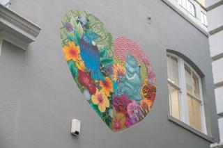 Like a sun burst, this heart is exploding with everything life has to offer. Sara hopes that its rays will be positive and life affirming to passersby.