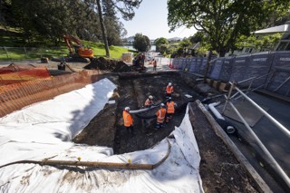 Watercare’s three-stage plan to replace the flood-damaged wastewater main beneath the Parnell Rose Garden is underway at the intersection of Judges Bay and Bridgewater roads.