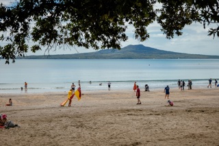 At the northern end of Takapuna Beach, curious-looking basalt formations can be seen across the shore platform at low tide.