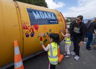 Preschoolers from Māngere East have put their hands on a tunnel boring before its put to work.