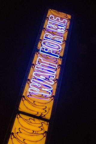 In the works Don’t Dream it’s Over, artist Janet Lilo has used her striking banana motif and sharp neon elements to illustrate Karangahape Road’s melting pot of history, cultural heritage and community diversity.